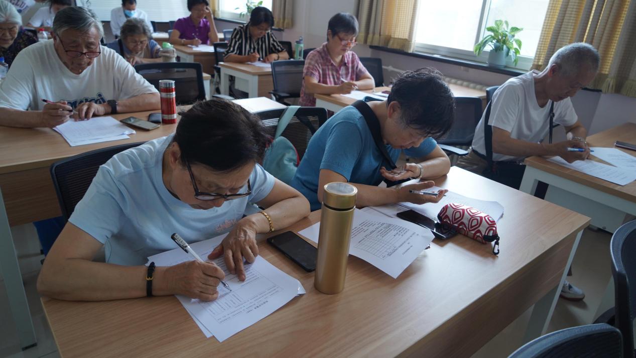 随后每人填写了一份关于记忆、睡眠与情绪的筛查量表,根据量表评分和测试结果,王老师一对一回答了老同志们的问题并进行了健康指导。