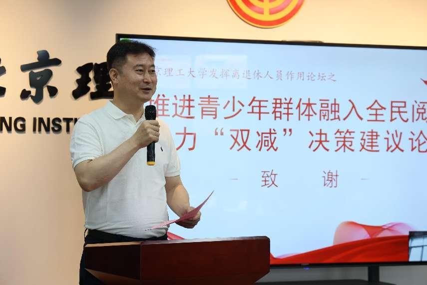 为了深入贯彻落实习近平总书记致首届全民阅读大会贺信精神和关于推动全民阅读、建设书香社会的重要指示,贯彻落实市委市政府关于建设书香京城的决策部署,更好发挥全民阅读工作对于首都“四个中心”功能建设赋能作用。8月24日,北京理工大学老科协受北京市老科总委托,举办推进青少年群体融入全民阅读助力“双减”的决策建议论坛。