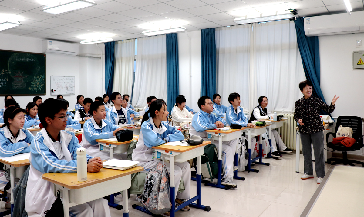 韩宝玲鼓励同学们要勇于挑战自我,追逐科学梦想,未来在广阔的科技天地中有所作为。讲座最后,全体同学齐声诵读了首都师大附中第一分校的校训——“自觉、勤奋、求实、创新”。