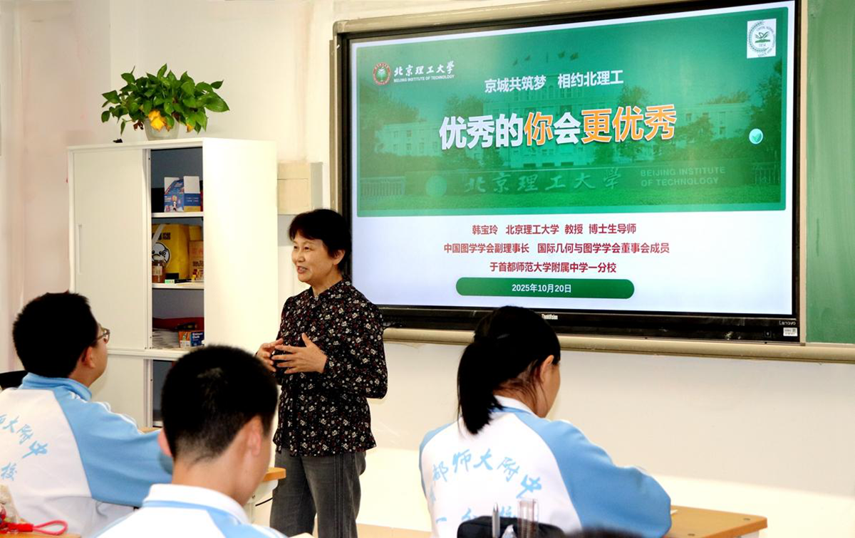 2025年10月20日,北京理工大学关工委“五老”韩宝玲教授应邀走进首都师范大学附属中学一分校,为近40名莘莘学子带来了一场题为“当机器人邂逅人工智能”的科普讲座。