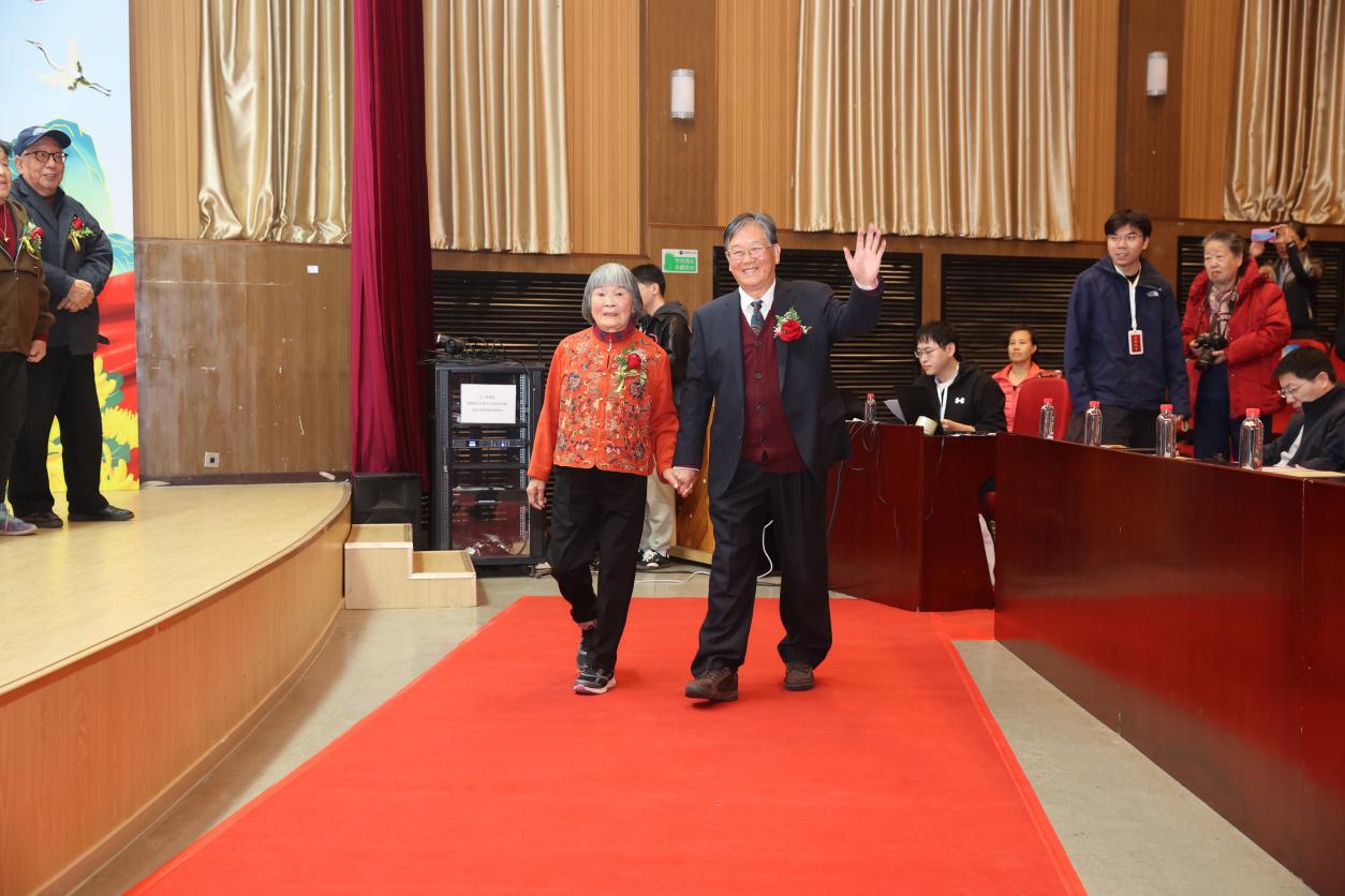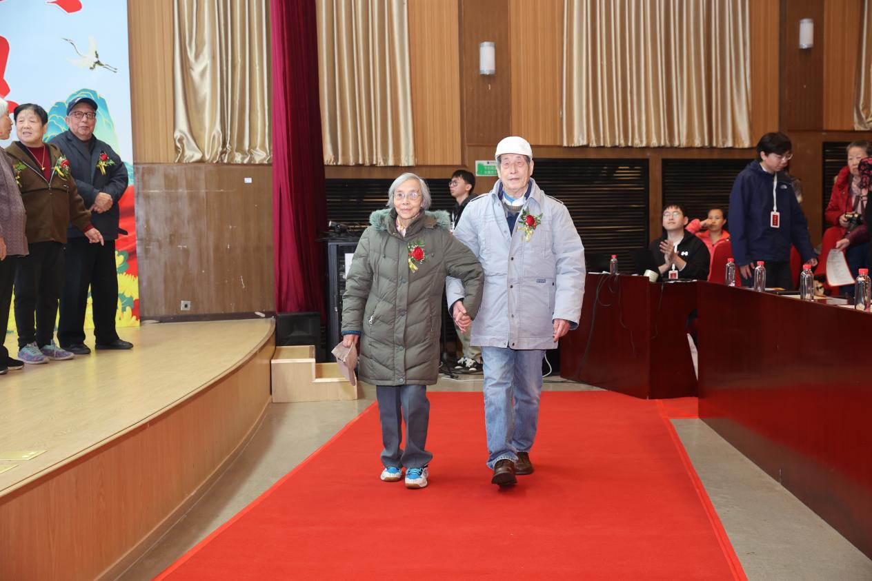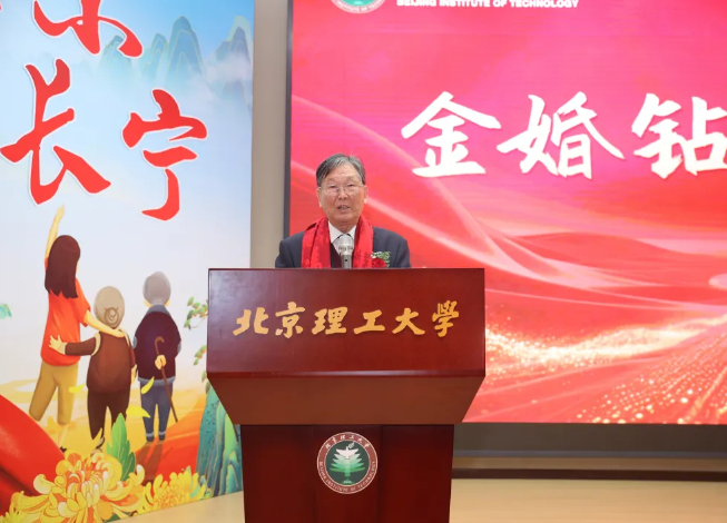 钻石婚老同志陆叔云分享了人生感悟。面对现场的祝福,老人难掩激动之情,回忆起携手走过的六十载,他说“从青春年少到白发苍苍,我们始终相互扶持、彼此包容,家庭的温暖与学校的关怀,是我们幸福生活的重要支撑。未来,我们依然会关注学校发展,为北理工的进步继续喝彩。”