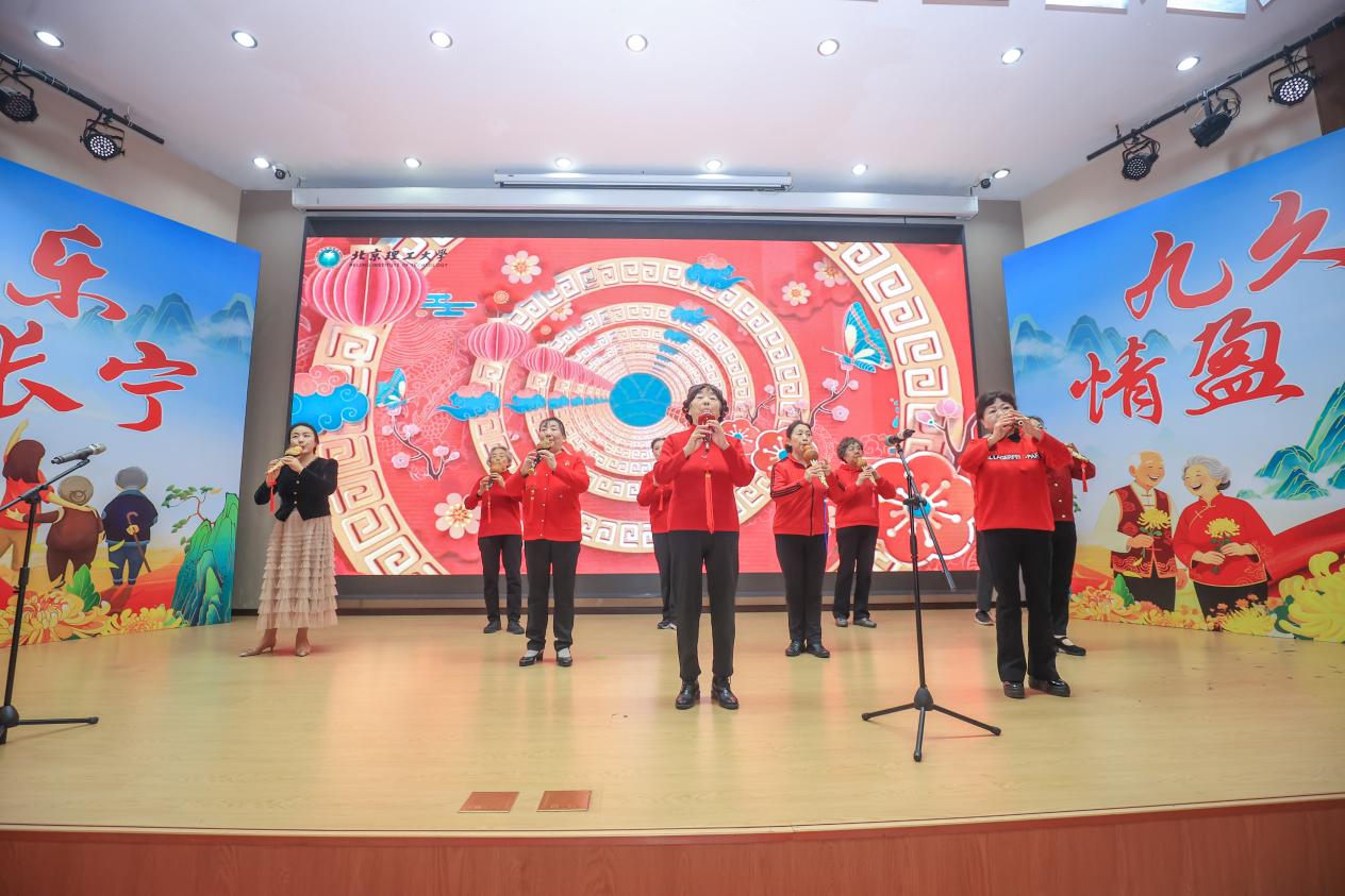 在北理工附小童声合唱《布谷鸟》与老年大学葫芦丝演奏《婚誓》《甜蜜蜜》的欢乐旋律中,庆祝活动正式拉开帷幕。