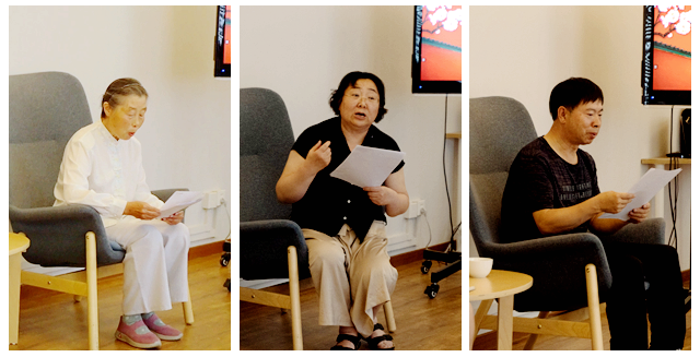 老党员王建国诵读了方志敏在狱中写下的《清贫》,再现了共产党人的坚定信仰和高尚情操。老党员纪新华诵读了陈然的《我的“自白”书》,讲述了陈然烈士视死如归的英雄故事。老党员郑秀华吟唱了歌曲《绣红旗》,带领大家感受共产党人的革命理想、坚强党性和牺牲精神。
