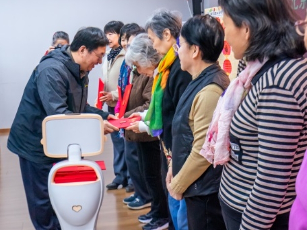 小丽机器人也来到现场为活动助兴。它用诙谐俏皮的语气第一时间向来到现场的老同志热情打招呼,并在开场时送诗一首,一句“学府春风聚贤才,银发翩翩踏歌来”为现场增添了别样活力。