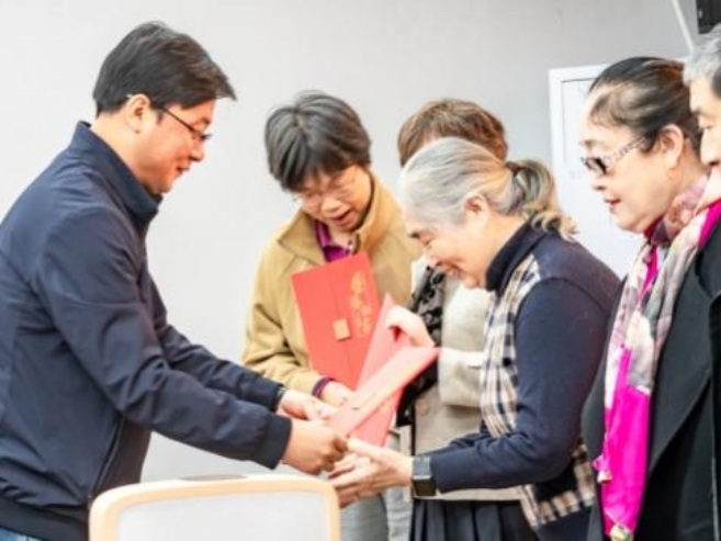离退休工作处处长宋希博介绍了老年大学2025年办学情况和2026年春季招生情况。老年大学办学情况得到老同志们的大力肯定,问卷调查显示,学员满意度达98.9%。2026年春季招生,老同志热情高涨,招收学员人数和录取人次分别比去年同期增长了43%和32%,年龄最大学员已经90岁。离退休教职工党委书记董兆波宣读了2025年秋季学期优秀学员名单。副书记、副处长张淑玲宣读了春季课程授课教师名单。