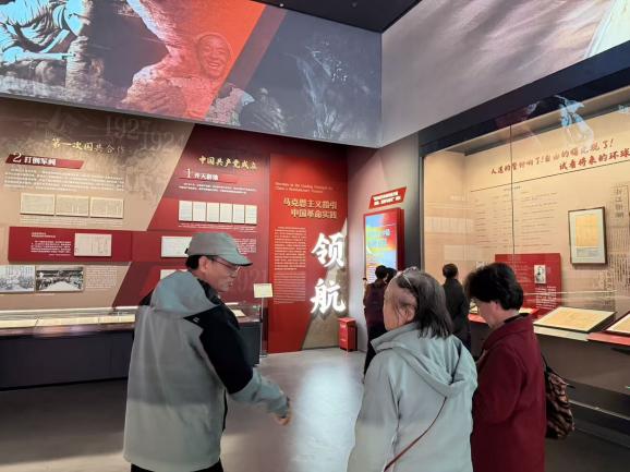 老党员们依次参观了各个展区。从良渚玉琮、二里头青铜礼器、殷墟甲骨到秦陵陶俑,一件件珍贵的出土文物生动展现了中华民族从多元一体到大一统的历史进程。大家驻足聆听,用心体悟中华文明的源远流长。在“民族觉醒”专题展区,老党员通过近代文献与革命文物,重温了民族觉醒的艰难历程以及在中国共产党领导下走向伟大复兴的光辉历程,进一步加深了对习近平总书记关于历史连续性重要论述的理解。