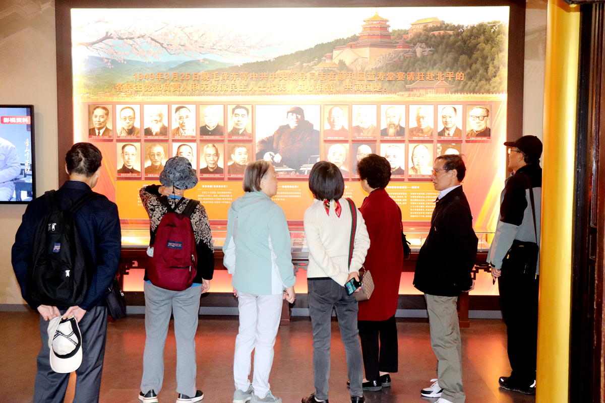 益寿堂是1949年中国共产党“进京赶考”的重要见证地。它见证了中国共产党领导人民筹建新中国的历史篇章,是开展爱国主义和革命传统教育的生动课堂。大家首先参观了“古都春晓——寻访中国共产党‘进京赶考’之路”主题展览。展览通过丰富的历史图片、文献资料和实物复原,详细讲述了1949年毛泽东主席等中央领导同志从西柏坡迁至北平时,在益寿堂等地停留、工作的历史情景,生动再现了那段关乎中国前途命运的“进京赶考”之路。